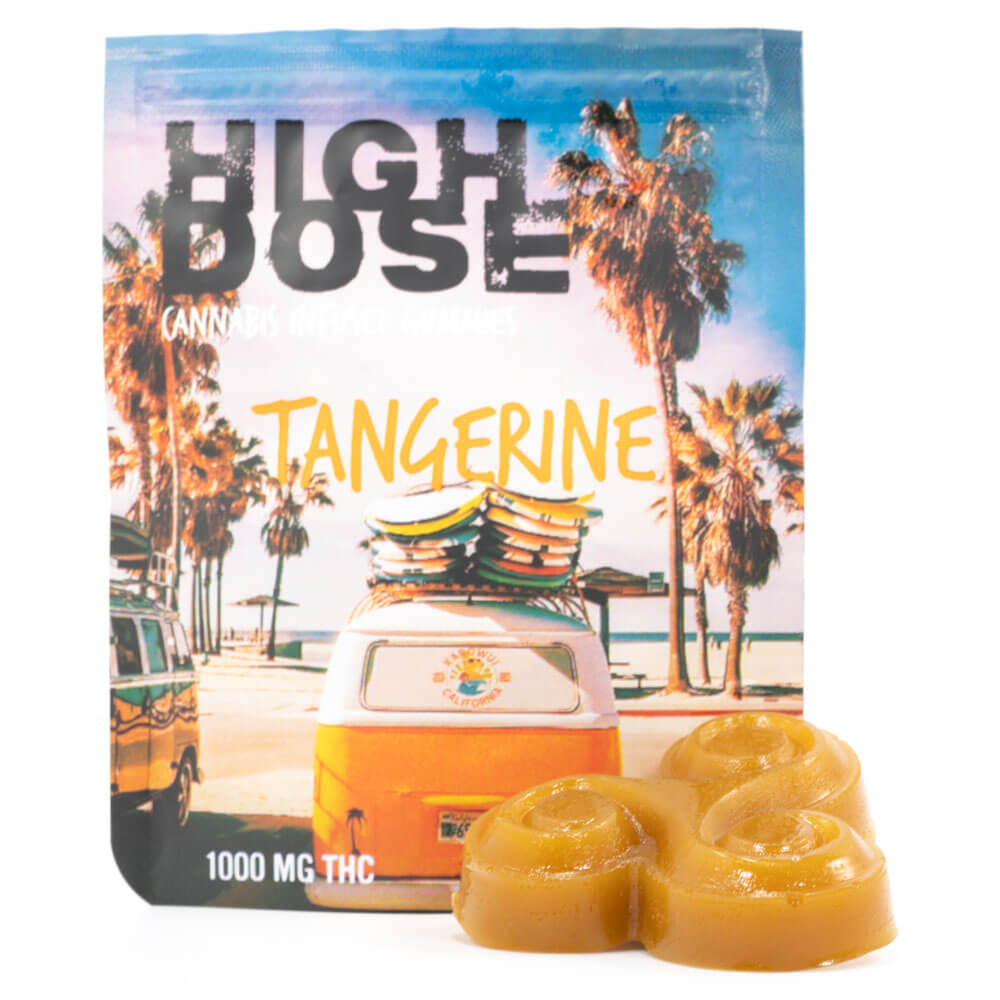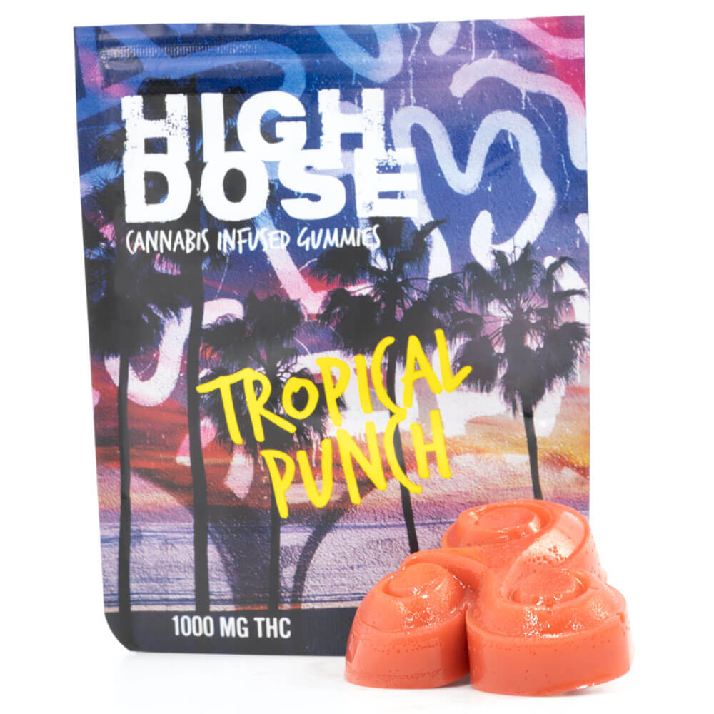 1000mg THC Gummies by High Dose are made with high quality THC distillate which is derived from high quality cannabis strains. Kick back and relax with some friends and enjoy these high dose edibles. High Dose Gummies are inspired by the west coast lifestyle, which includes chillin’ by the beach, surfing, skating and getting high with friends.